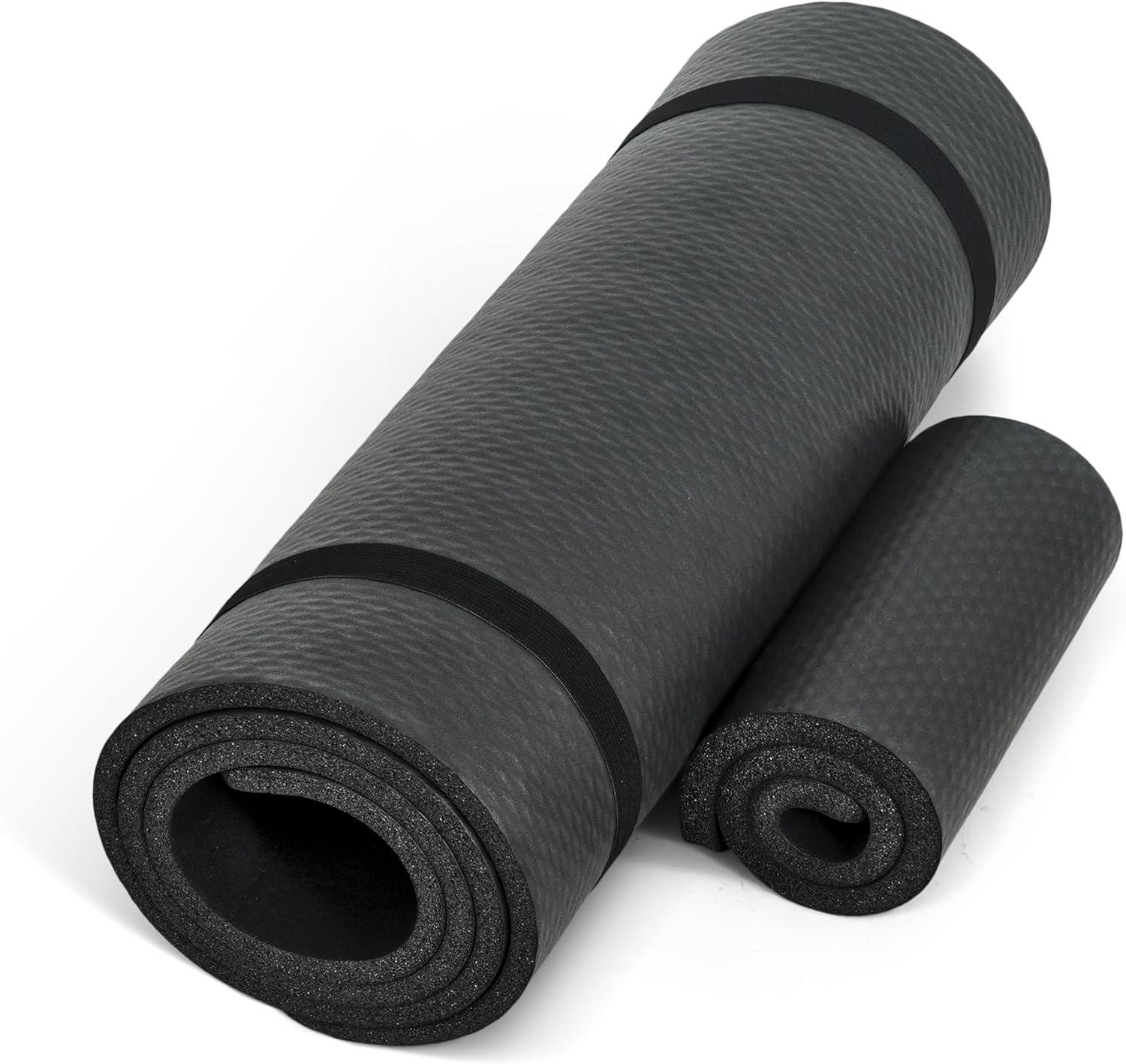 CAP Barbell 1/2-Inch High Density Exercise Yoga Mat with Strap | Multiple Options(Black)