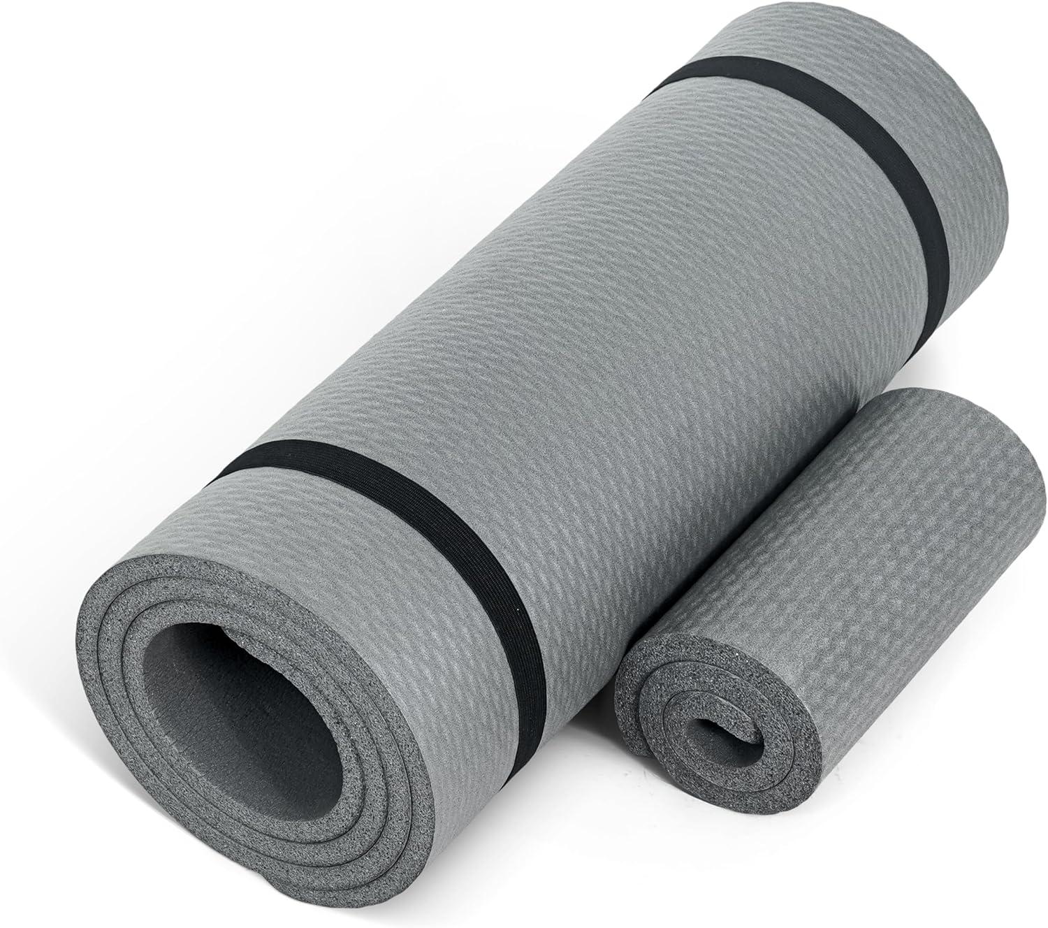 CAP Barbell 1/2-Inch High Density Exercise Yoga Mat with Strap | Multiple Options(Gray)