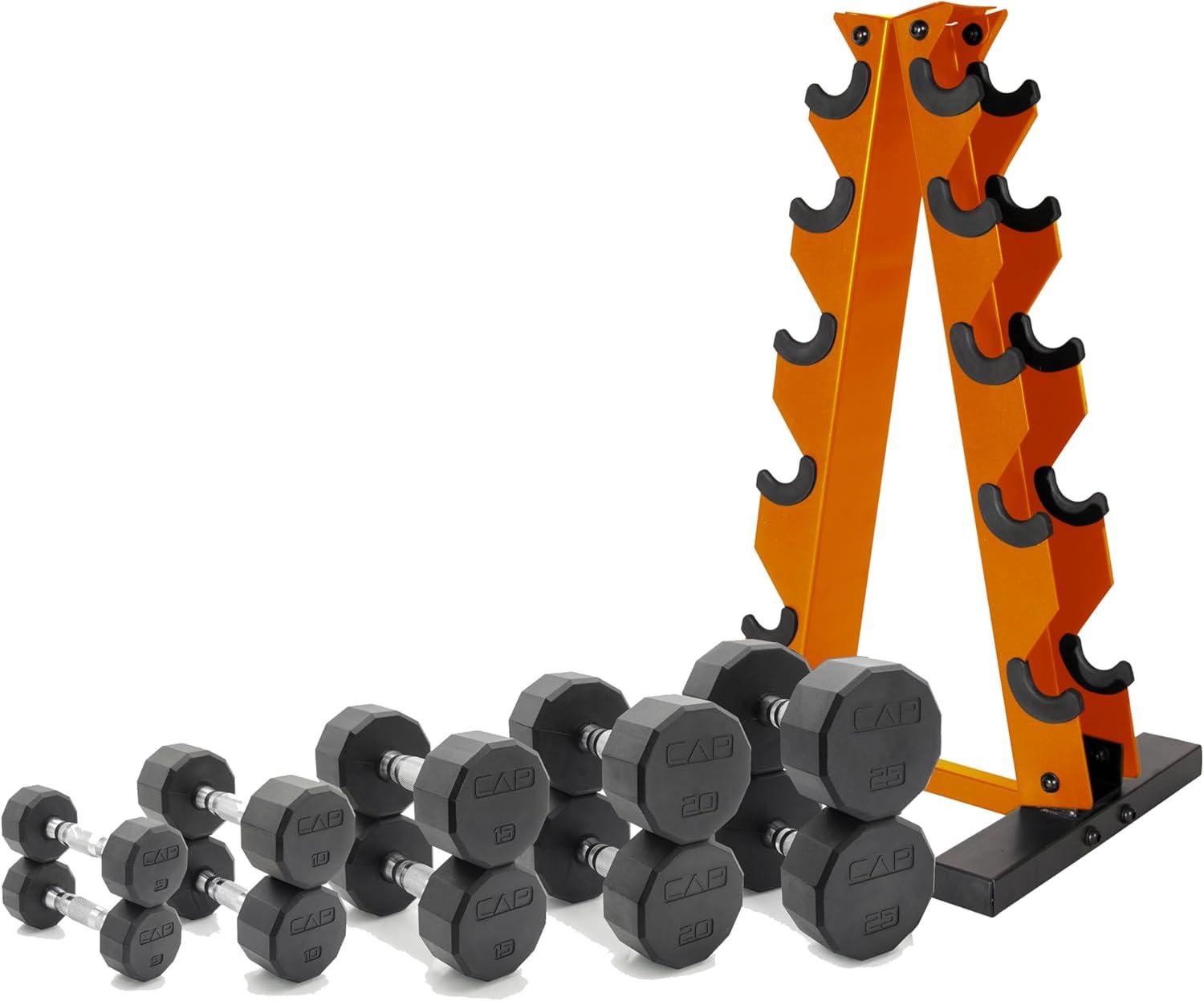 CAP Barbell Rubber Coated Dumbbell Weight Set with Vertical Rack | 100 lb, 150 lb, and 210 lb Options(210 pounds)