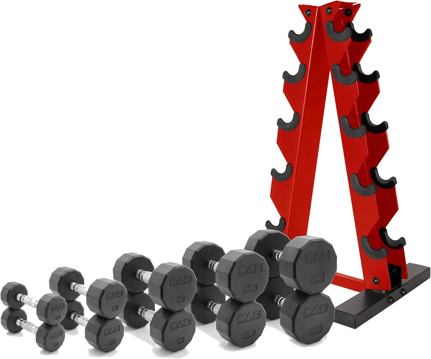 CAP Barbell Rubber Coated Dumbbell Weight Set with Vertical Rack | 100 lb, 150 lb, and 210 lb Options(150 lb – Set)