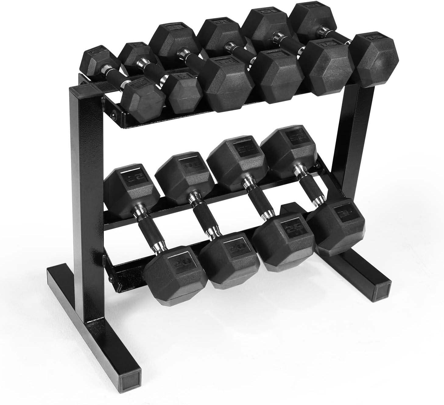 SPACE-SAVING DESIGN – The Two Tier design of this rack maximizes floor space. Easily access and store dumbbells. Rubber inserts prevent dumbbells and rack from scratches