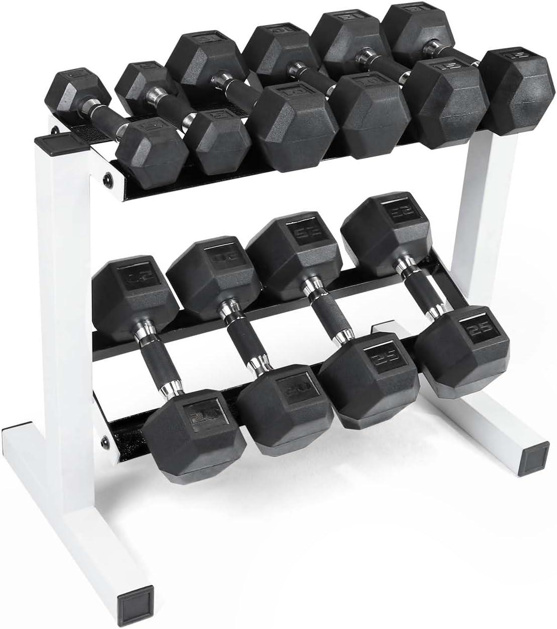 SPACE-SAVING DESIGN – The Two Tier design of this rack maximizes floor space. Easily access and store dumbbells. Rubber inserts prevent dumbbells and rack from scratches
