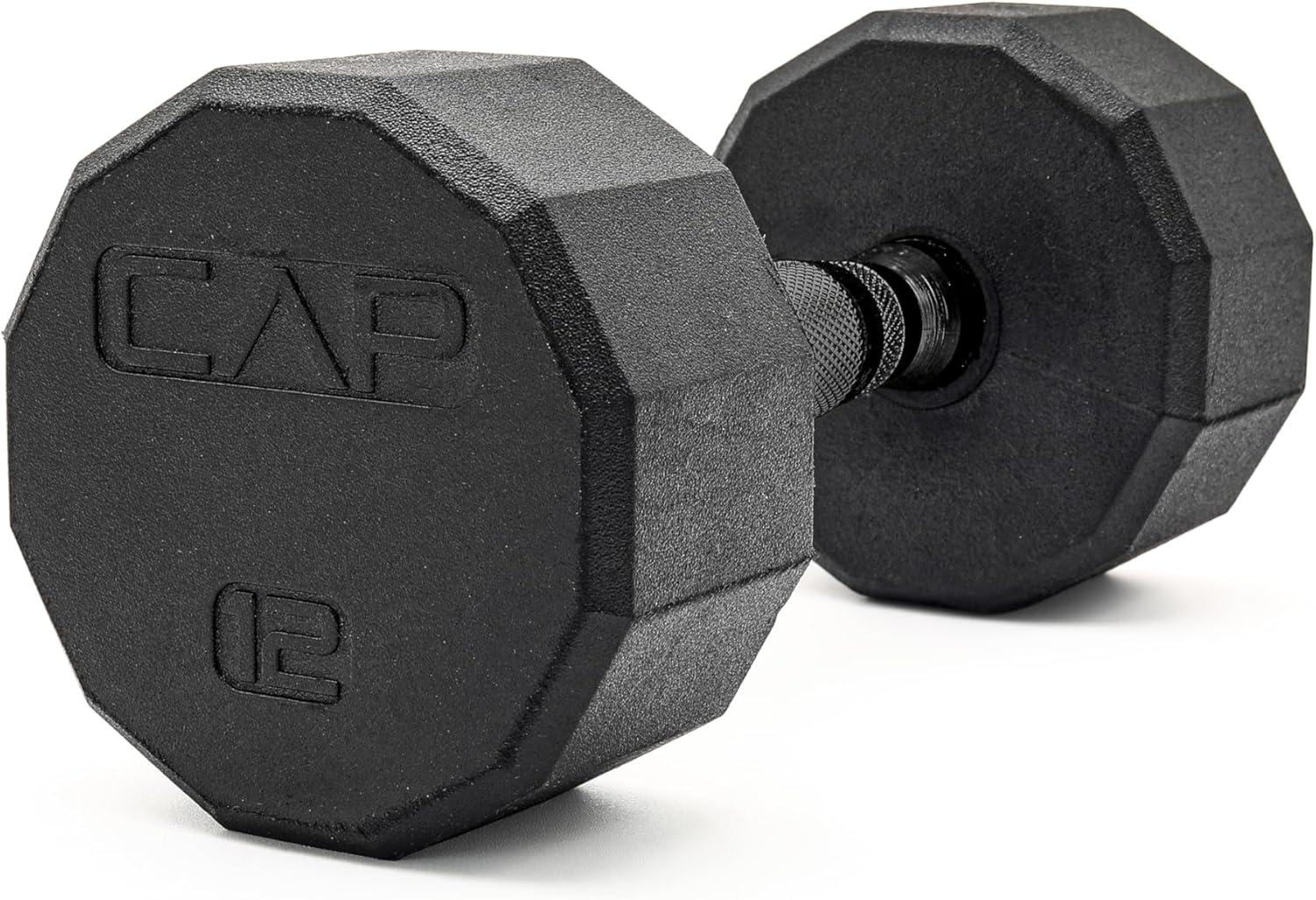 CAP Barbell Coated Hex Dumbbell Weight – Single | 10-120 lbs | Multiple Options(12-Sided – Black Handle)