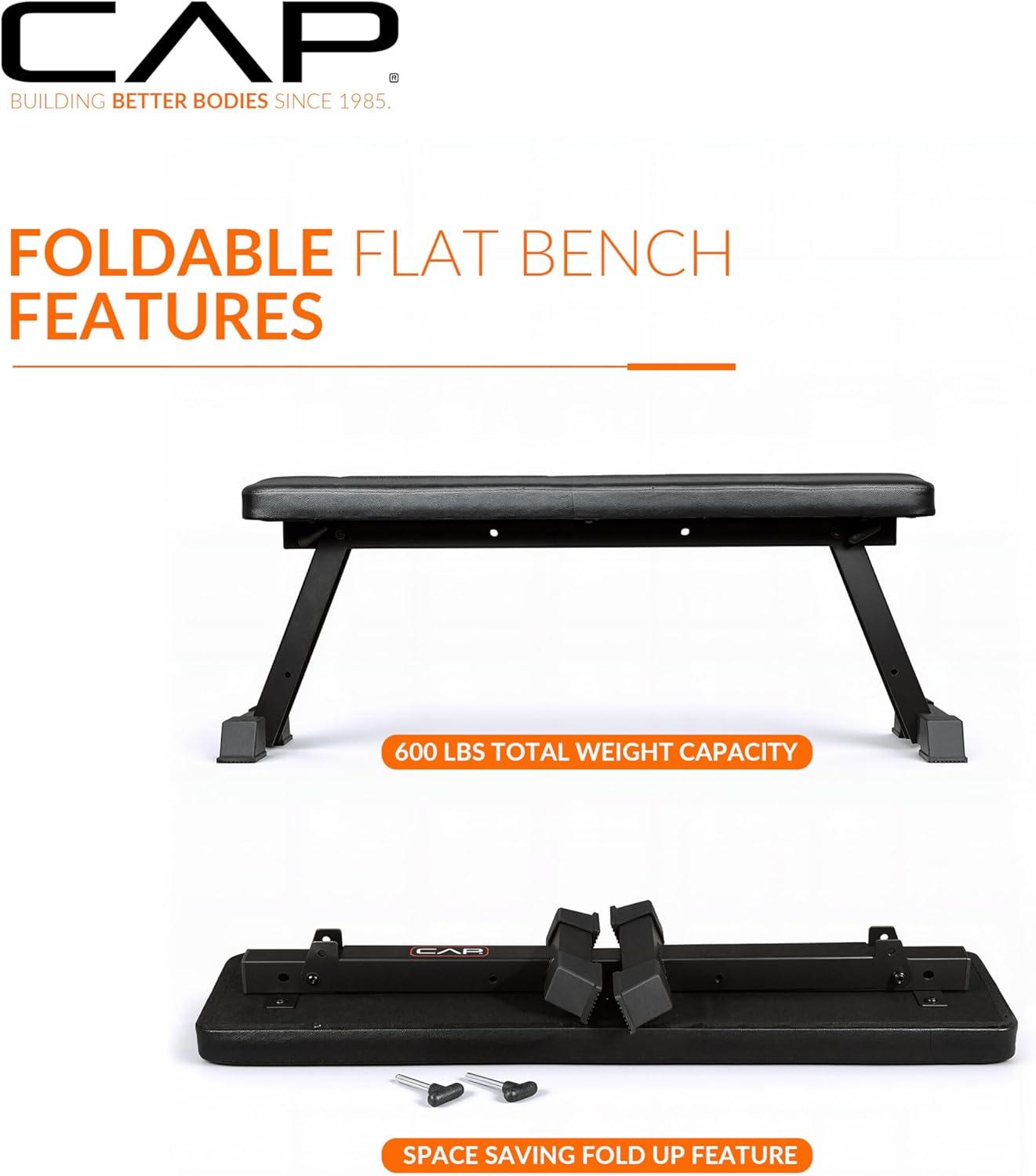 CAP Barbell Foldable Flat Weight Bench | Folding Workout Bench with Steel Frame, Thick Box-Stitched Padding & 600 LB Capacity | Compact Home Gym Strength Training Bench