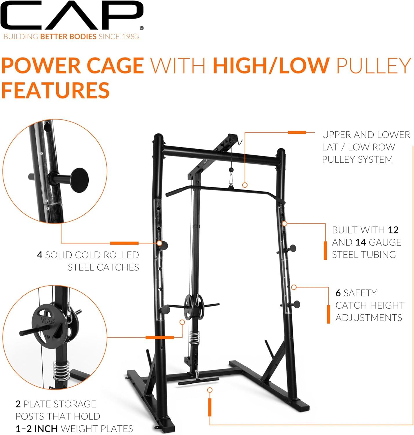 CAP Barbell Power Cage with High-Low Pulleys, Black