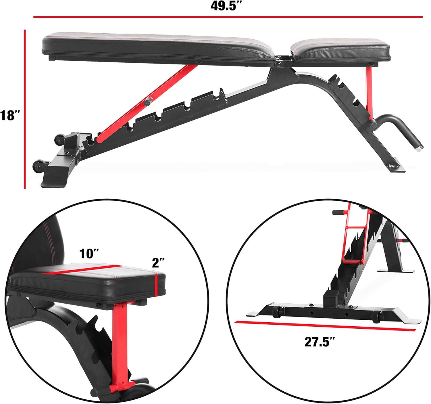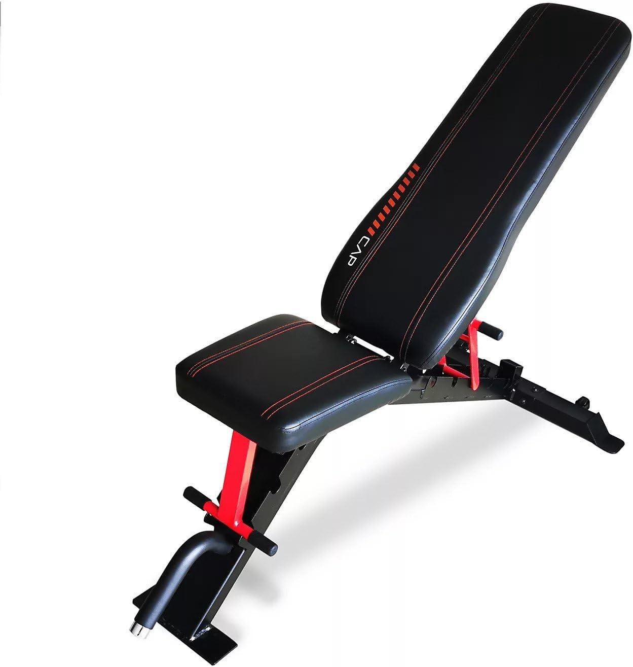 CAP Barbell Strength FID Workout Bench | Flat Incline Decline Positions, Black/Red